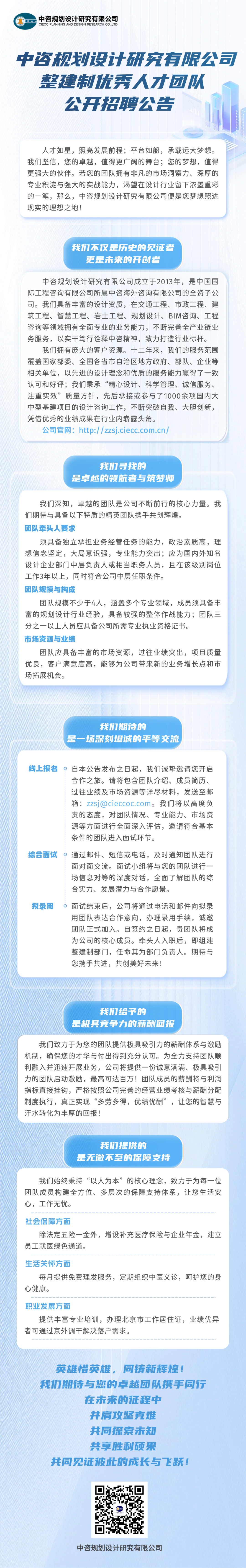 中咨規(guī)劃設(shè)計(jì)研究有限公司整建制優(yōu)秀人才團(tuán)隊(duì)公開(kāi)招聘公告
