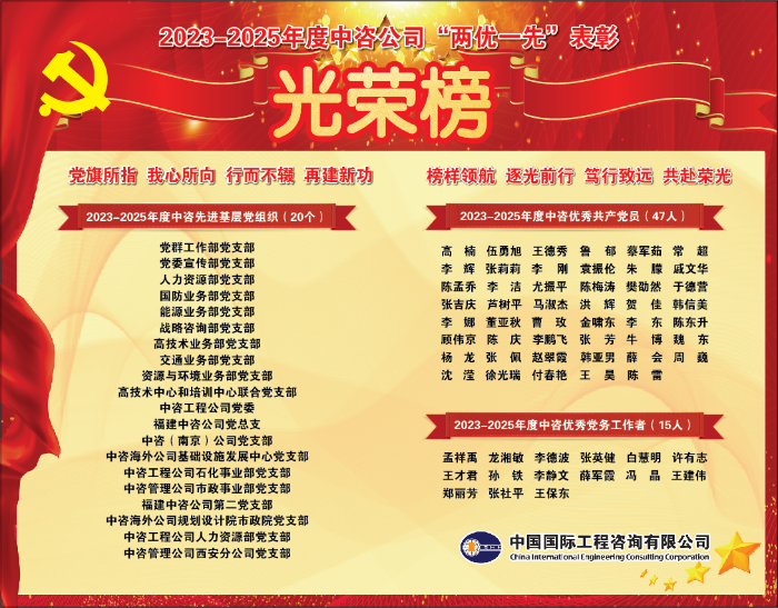 6月30日,中咨公司隆重召開慶祝中國(guó)共產(chǎn)黨成立104周年暨“七一”表彰大會(huì),對(duì)過去兩年在推進(jìn)公司黨的建設(shè)和改革發(fā)展進(jìn)程中涌現(xiàn)的先進(jìn)典型進(jìn)行表彰,進(jìn)一步激勵(lì)各級(jí)黨組織和廣大黨員不忘初心、牢記使命,為公司加快建設(shè)國(guó)家高端智庫和世界一流咨詢機(jī)構(gòu)作出新的更大貢獻(xiàn)。 公司黨委副書記、董事、總經(jīng)理郭銘群出席會(huì)議并講話,受公司黨委書記、董事長(zhǎng)茍護(hù)生委托,代表公司黨委,向受到表彰的先進(jìn)集體和個(gè)人表示誠(chéng)摯的祝賀、向奮戰(zhàn)在公司各條戰(zhàn)線的廣大黨員干部職工致以節(jié)日的問候,并對(duì)各級(jí)黨組織和黨員同志提出要求和期待。會(huì)議由公司黨委副書記、工會(huì)主席朱嵐主持,黨委委員、總會(huì)計(jì)師王麗靜宣讀公司黨委關(guān)于表彰2023—2025年度“兩優(yōu)一先”的決定,公司領(lǐng)導(dǎo)潘小海、沈浩、劉富榮、李開孟參加會(huì)議。 郭銘群在講話中指出,公司各級(jí)黨組織和廣大黨員干部職工堅(jiān)持以習(xí)近平新時(shí)代中國(guó)特色社會(huì)主義思想為指導(dǎo),以開展深入貫徹中央八項(xiàng)規(guī)定精神學(xué)習(xí)教育為動(dòng)力,聚焦主責(zé)主業(yè)、把準(zhǔn)功能定位,為黨和國(guó)家有關(guān)重大戰(zhàn)略、重大規(guī)劃、重大工程和重大投資政策實(shí)施提供了重要智力支撐,并在實(shí)踐中深刻認(rèn)識(shí)到:必須始終把黨的事業(yè)放在心中最高位置,把“兩個(gè)維護(hù)”印刻在腦海里、落實(shí)到行動(dòng)上,牢記“黨之大計(jì)”、胸懷“國(guó)之大者”、助建“國(guó)之重器”,以更高站位、更高水平、更高質(zhì)量服務(wù)黨和國(guó)家科學(xué)決策。 郭銘群強(qiáng)調(diào),公司各級(jí)黨組織要扛起主體責(zé)任,鍛造堅(jiān)強(qiáng)堡壘,全體黨員要以黨性立“智”、以清風(fēng)潤(rùn)“咨”,進(jìn)一步堅(jiān)定發(fā)展信心、保持發(fā)展定力、搶抓發(fā)展機(jī)遇,齊心協(xié)力譜寫公司高質(zhì)量發(fā)展新篇章。銳意改革攻堅(jiān)、埋頭苦干實(shí)干,不折不扣落實(shí)公司“五五戰(zhàn)略”和“3510”策略,以破解發(fā)展難題、提升管理效能、防范化解風(fēng)險(xiǎn)的擔(dān)當(dāng)和作為彰顯黨性;堅(jiān)持從群眾中來、到群眾中去,著力解決職工急難愁盼問題,在開展政策研究和咨詢服務(wù)過程中站穩(wěn)人民立場(chǎng),以用心用情辦實(shí)事的行動(dòng)和成效彰顯黨性;從嚴(yán)從實(shí)加強(qiáng)作風(fēng)建設(shè),以開展深入貫徹中央八項(xiàng)規(guī)定精神學(xué)習(xí)教育為契機(jī),不斷提高拒腐防變能力,永葆黨員政治本色,在共同營(yíng)造風(fēng)清氣正干事創(chuàng)業(yè)良好政治生態(tài)中彰顯黨性。 大會(huì)共表彰了20個(gè)“先進(jìn)基層黨組織”、47名“優(yōu)秀共產(chǎn)黨員”和15名“優(yōu)秀黨務(wù)工作者”。公司領(lǐng)導(dǎo)為受表彰的先進(jìn)集體和個(gè)人頒獎(jiǎng)。能源業(yè)務(wù)部李德波、中咨工程公司牛博、中咨海外公司蘇寶健代表獲獎(jiǎng)集體和個(gè)人作交流發(fā)言。 朱嵐在主持講話中指出,公司全體黨員要以先進(jìn)為標(biāo)桿,以典型為榜樣,弘揚(yáng)偉大建黨精神,進(jìn)一步提高政治站位、強(qiáng)化政治擔(dān)當(dāng),堅(jiān)定奮斗意志、堅(jiān)定恒心韌勁,永遠(yuǎn)保持共產(chǎn)黨員的激情和榮耀,攻堅(jiān)克難完成年度各項(xiàng)目標(biāo)任務(wù),以實(shí)干實(shí)績(jī)?yōu)辄h旗增光添彩。 會(huì)議采取線上線下相結(jié)合的方式召開。公司總部部門副職及以上管理人員和相應(yīng)層級(jí)專業(yè)職級(jí)人員、在京所屬企業(yè)班子成員和獲獎(jiǎng)代表在現(xiàn)場(chǎng)參會(huì)。公司總部處級(jí)干部和相應(yīng)職級(jí)人員、京外所屬企業(yè)班子成員以及各所屬企業(yè)黨員代表線上參會(huì)。 | |||||